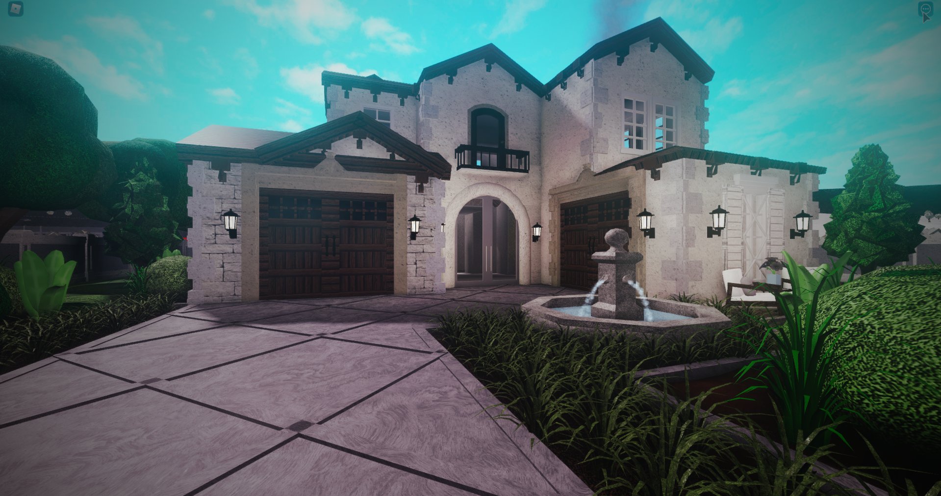 Two design languages can lead to the Bloxburg house ideas, which have a sleek and thin look within that artist’s geometric design. This large luxury Bloxburg mansion will offer you a huge interior space that can nestle multiple bathrooms and bedrooms, along with additional recreational areas like a lawn or a pool.